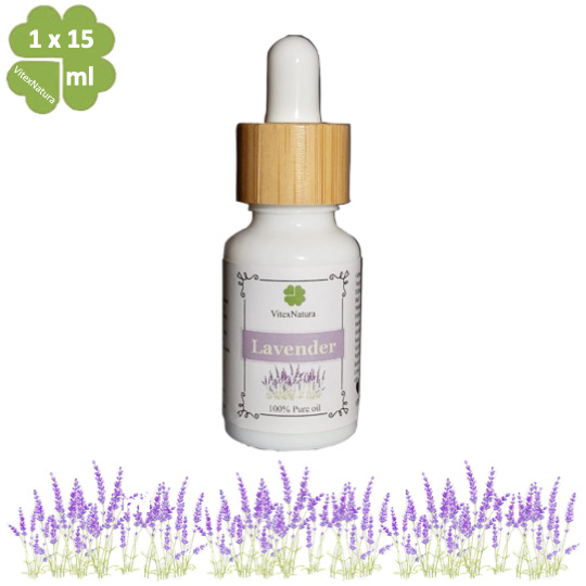 OverzichtLavendel olie (Lavandula Intermedia). Staat bekend om zijn kalmerende eigenschappen.